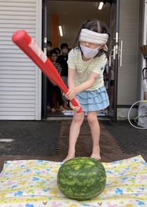 スイカ割り❗️スイカって固い〜💦